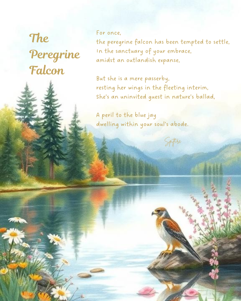 But she is a mere passerby, resting her wings in the fleeting interim,
